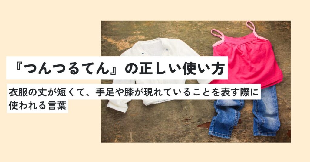 「つんつるてん」という言葉には、「衣服の丈が短くて、手足や膝が現れていること」という意味があります。